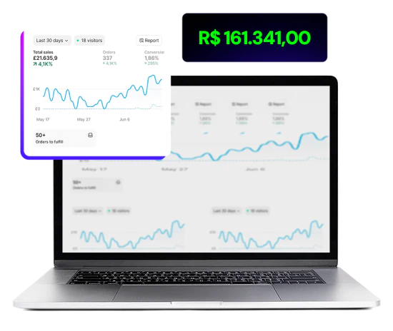 Crie lojas de alta conversão em minutos com nossa inteligência artificial, mesmo sem saber nada de design ou programação.
